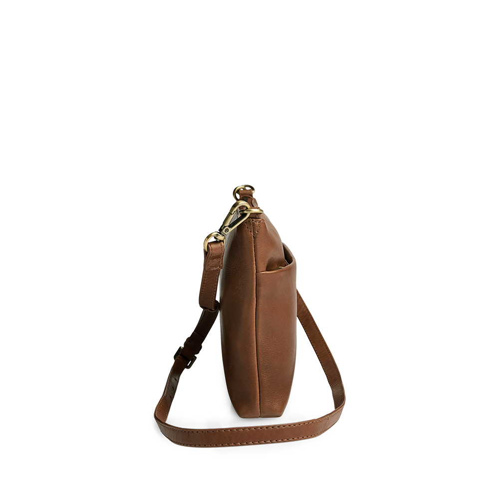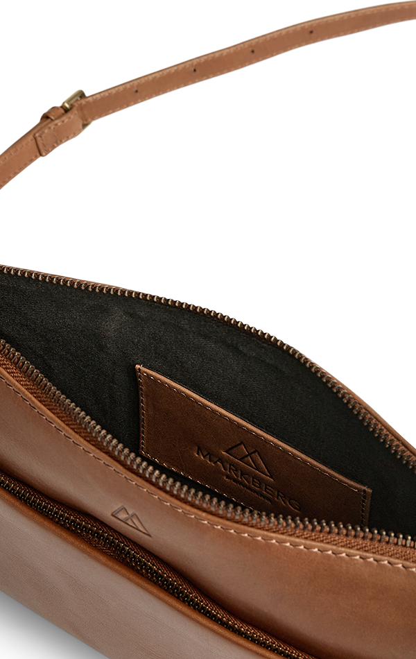 Vegetable-tanned leather crafted from natural materials. The texture and colour can differ, reflecting the leather's natural traits. This leather type develops a unique patina over time. This gives the bag a unique look.