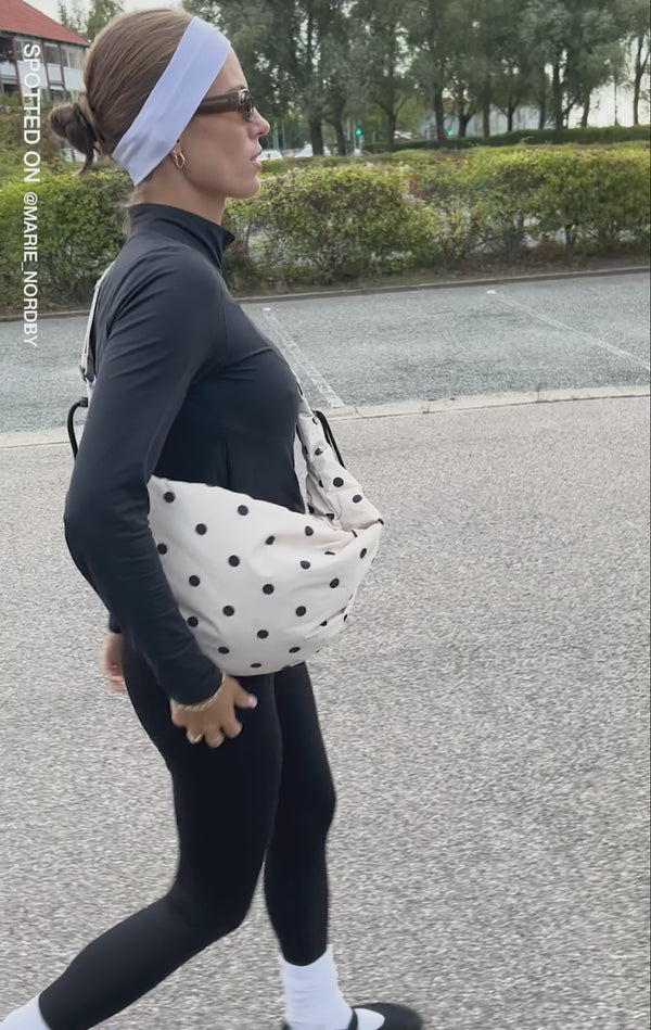 Elegant and spacious bag with a sporty, casual expression – perfect as a sports bag or for relaxed everyday wear. Designed to keep up with your pace and adapt to your style with adjustable drawstring details at the sides to shape the silhouette.