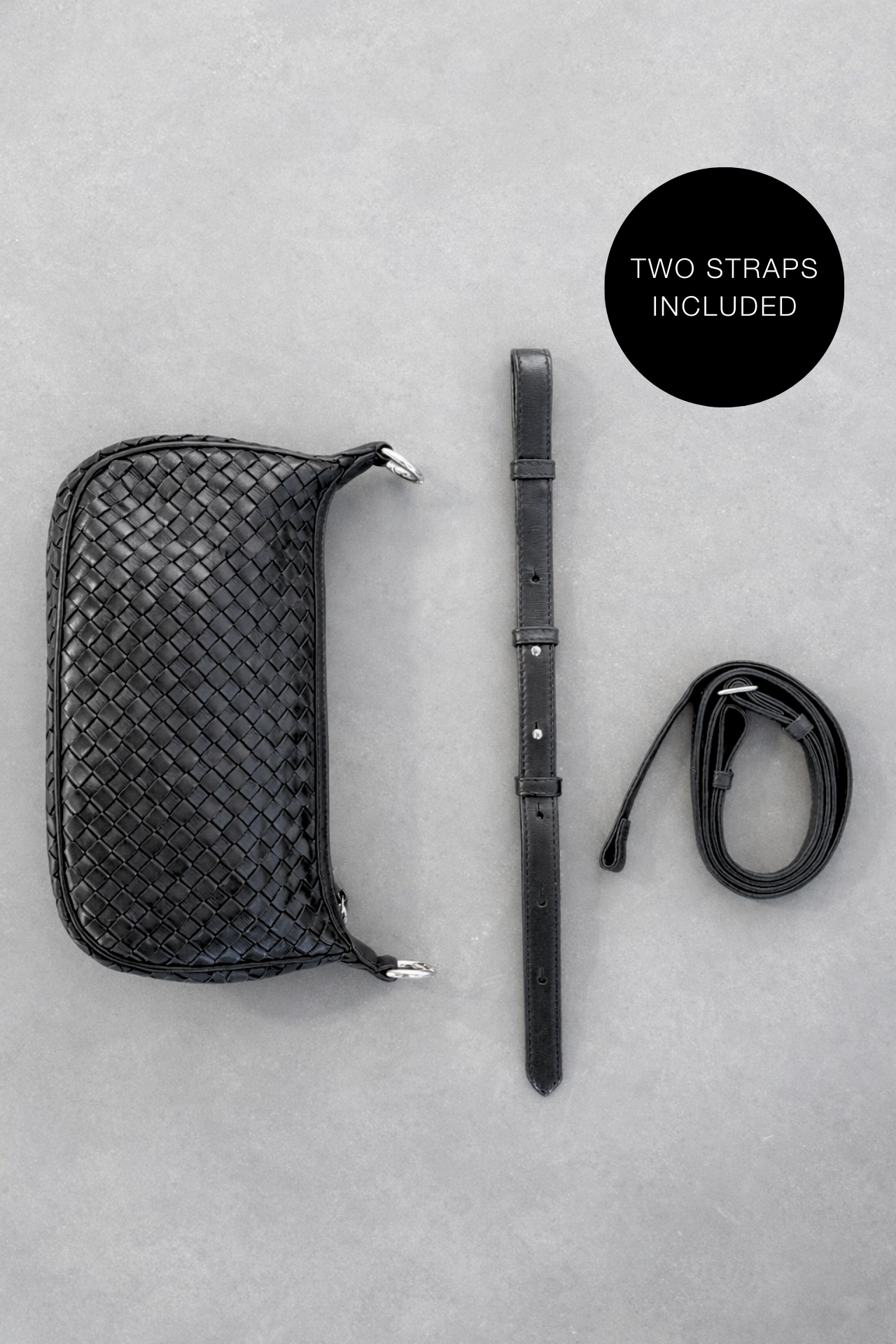 The bag comes with two straps: a short handle and a crossbody strap. The strap can be changed by opening the rings on both sides, after which the leather strap can be removed and replaced.