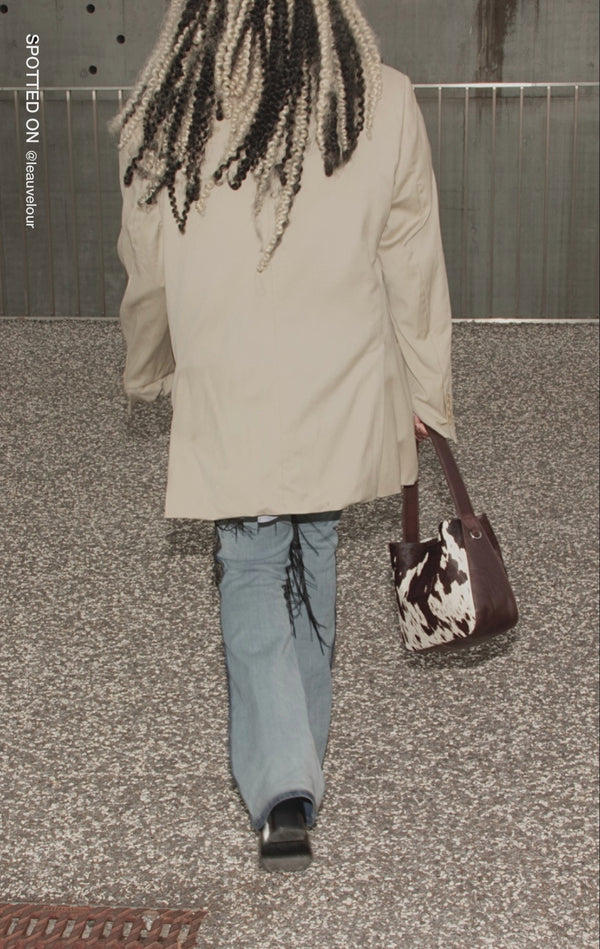 The COW collection is crafted with an emphasis on both aesthetics and functionality. The leather is strategically placed on areas like the base, sides, and handle to ensure practical use. This helps keep your bag looking beautiful, even with daily use.