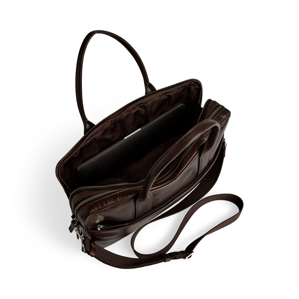 Elegant and functional laptop bag in cow leather with a timeless and masculine look. The bag is designed with a focus on quality and practicality – ideal for both work and travel.