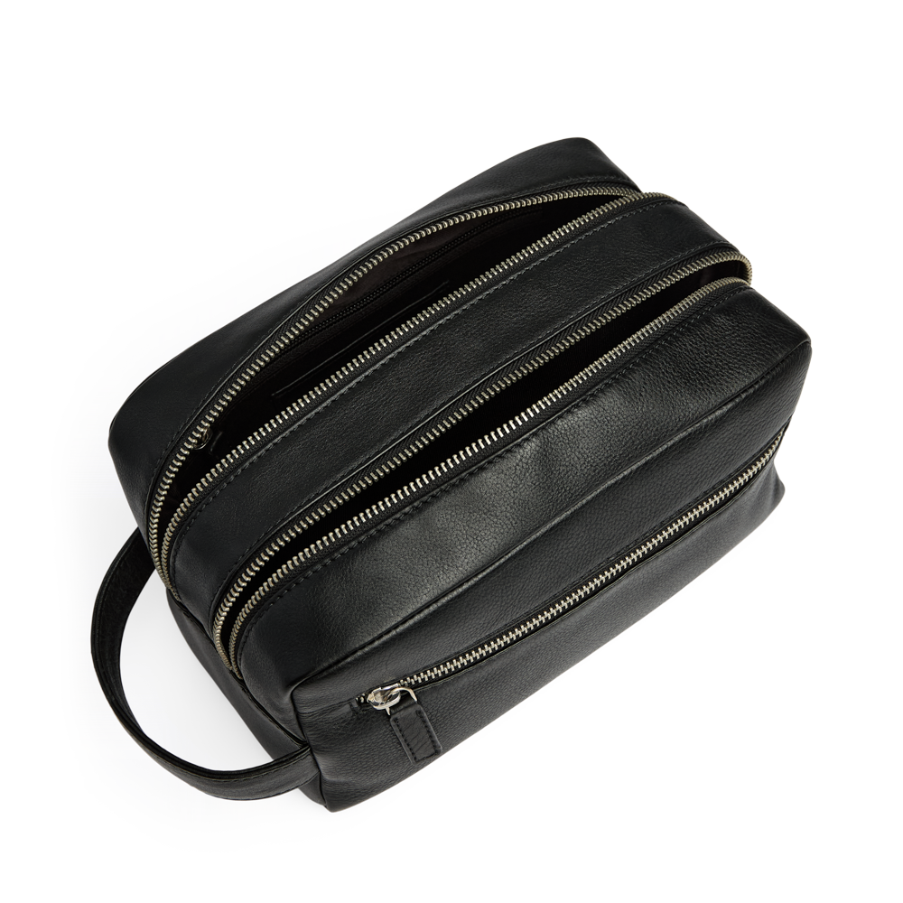 Sleek and functional toiletry bag in soft calf leather. The two separate compartments make it easy to keep your toiletries organized – perfect for both travel and everyday use.