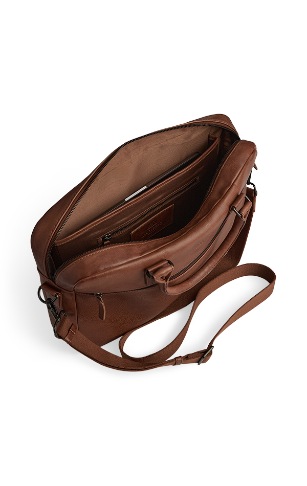 Timeless work bag in soft calfskin leather with a minimalist and exclusive look. The bag is designed with a focus on functionality and understated elegance – perfect for everyday office use or when you’re on the go.