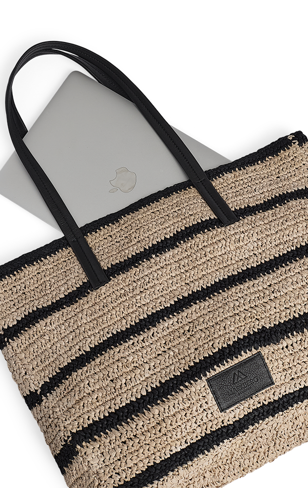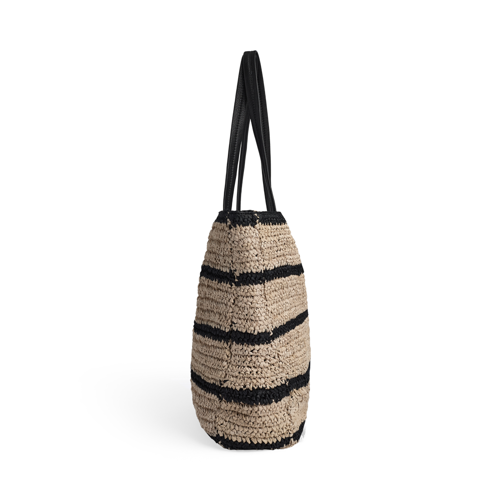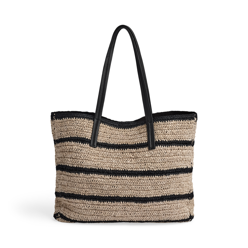 A spacious and stylish bag with a woven structure and long leather handles. It combines a light expression with ample space, making it ideal for everyday use, work, and weekend trips.