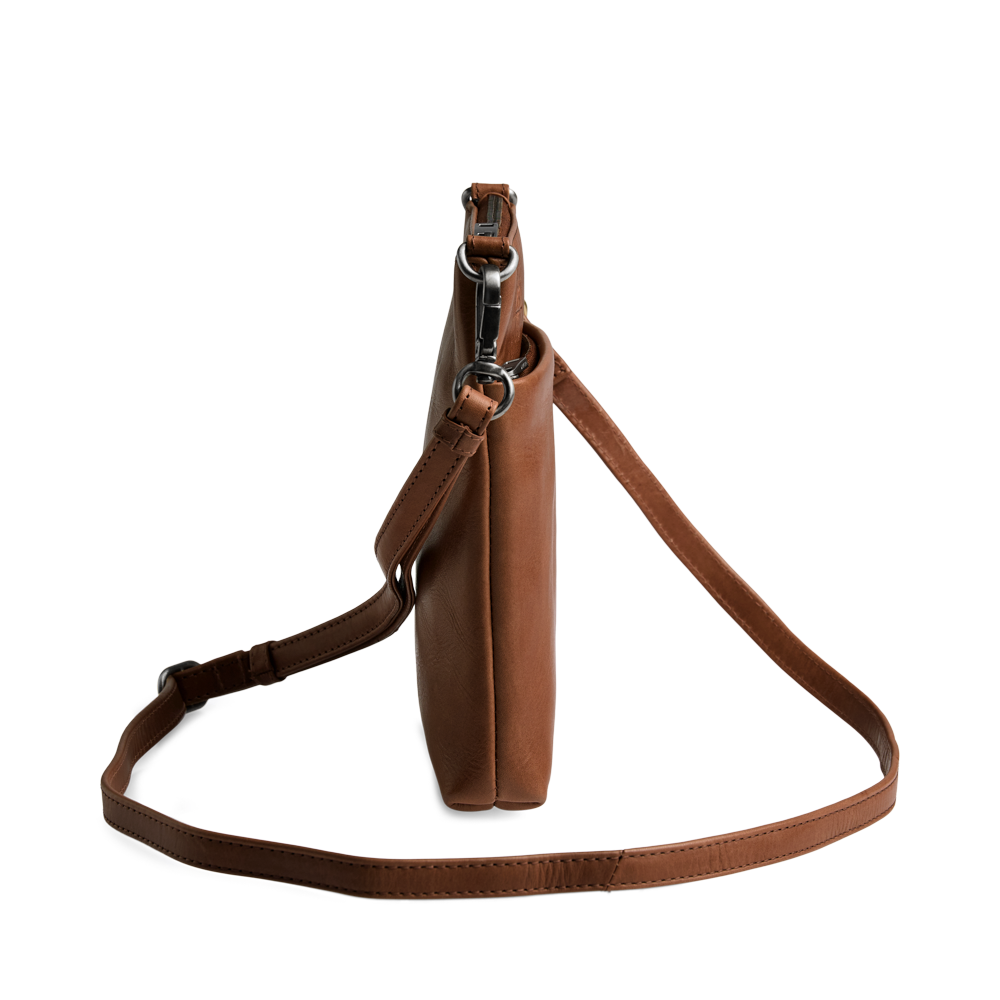 Vegetable-tanned leather crafted from natural materials. The texture and colour can differ, reflecting the leather's natural traits. This leather type develops a unique patina over time. This gives the bag a unique look.