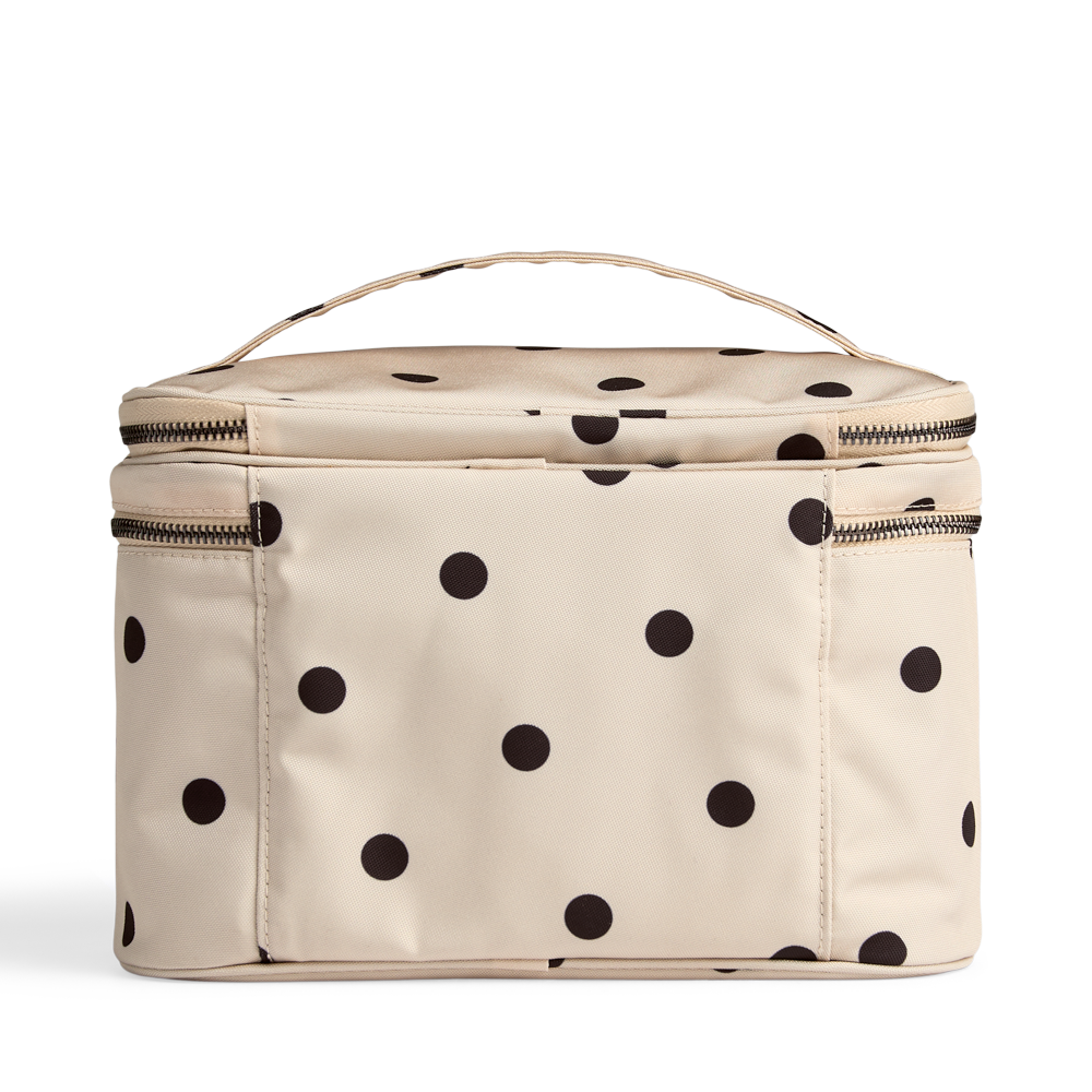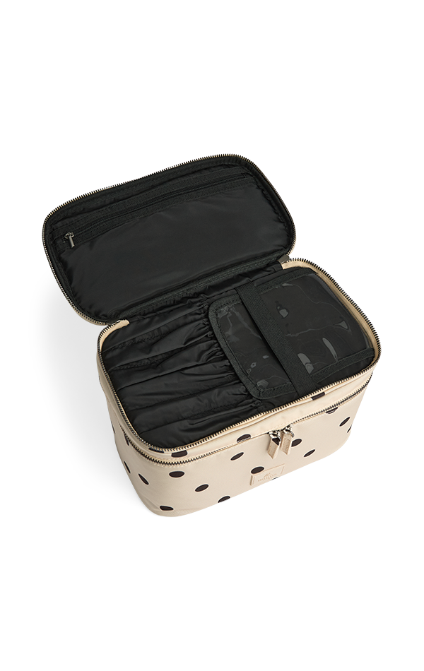 The top zip compartment features sections for makeup brushes as well as a zip pocket