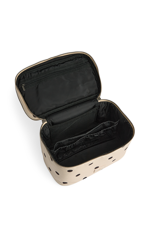 A functional toiletry bag made from water-repellent, vegan materials with practical compartments and plenty of space. The separate sections provide easy organization, making it ideal for storing makeup and toiletries - both at home and on the go.