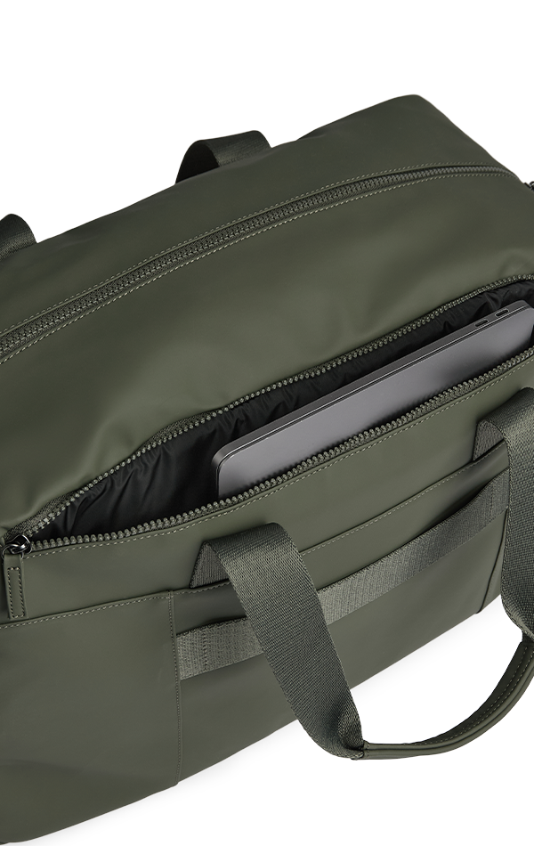 Weekend bag designed in a durable, water-repellent material with plenty of space for clothes, shoes, a laptop, and essentials – perfect for travel, workouts, or as carry-on.