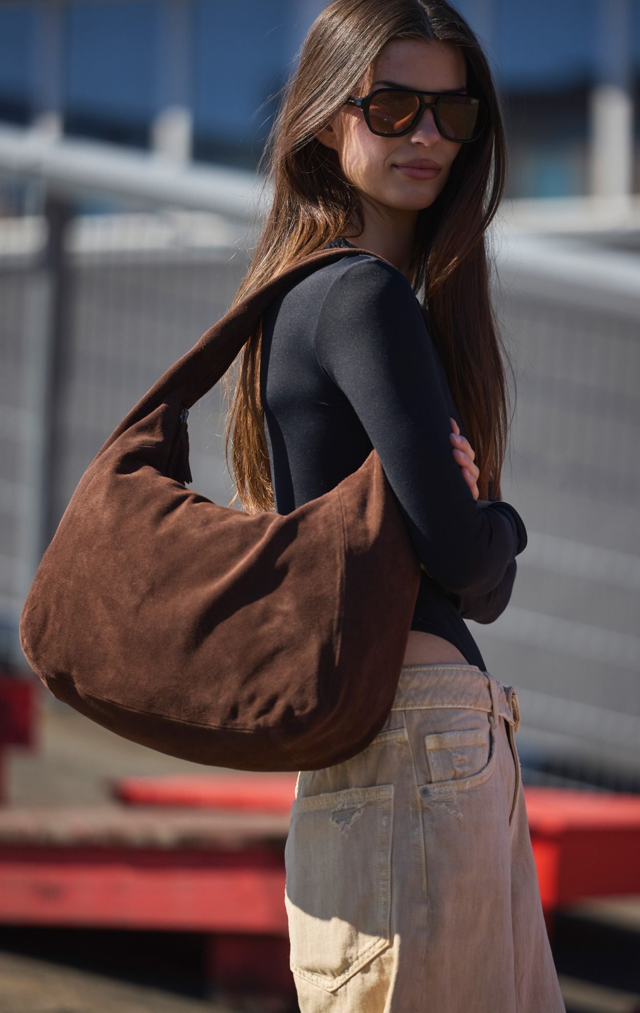 A soft hobo bag with a classic silhouette and exclusive suede.