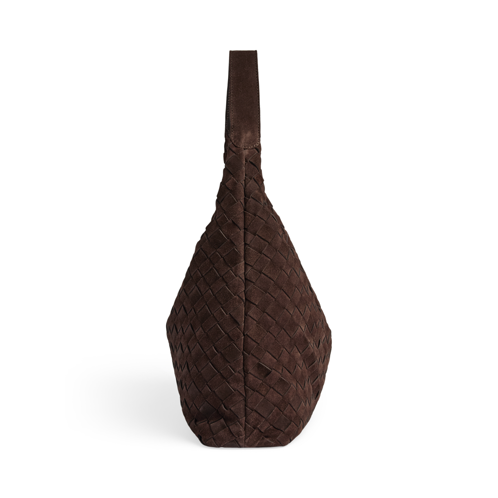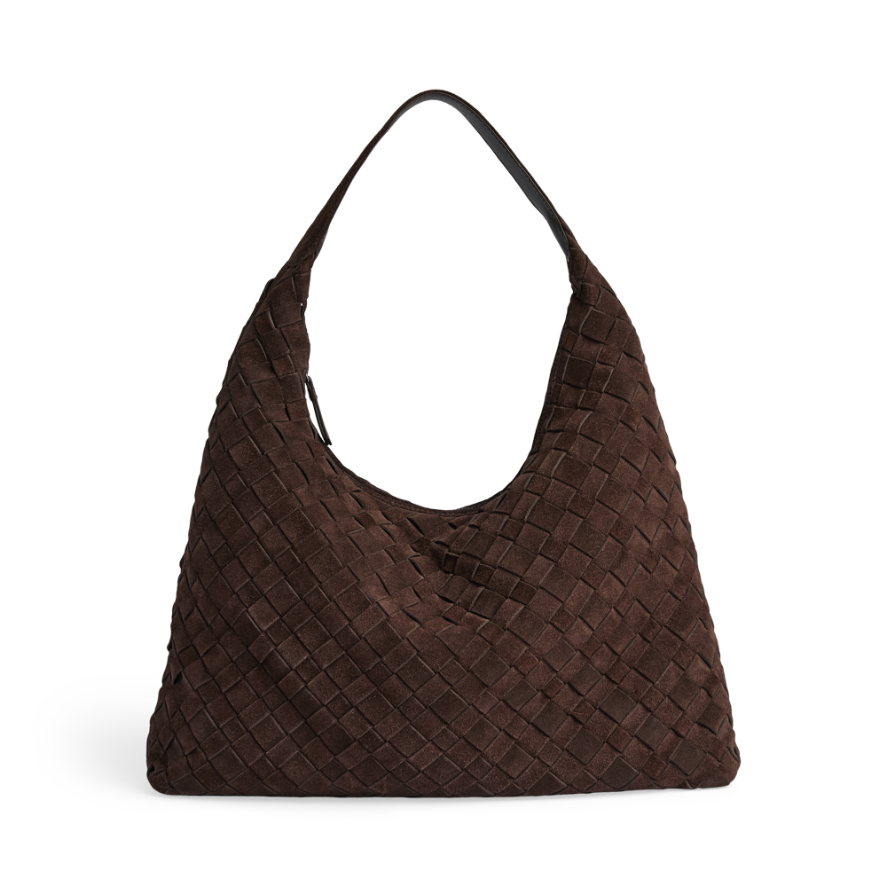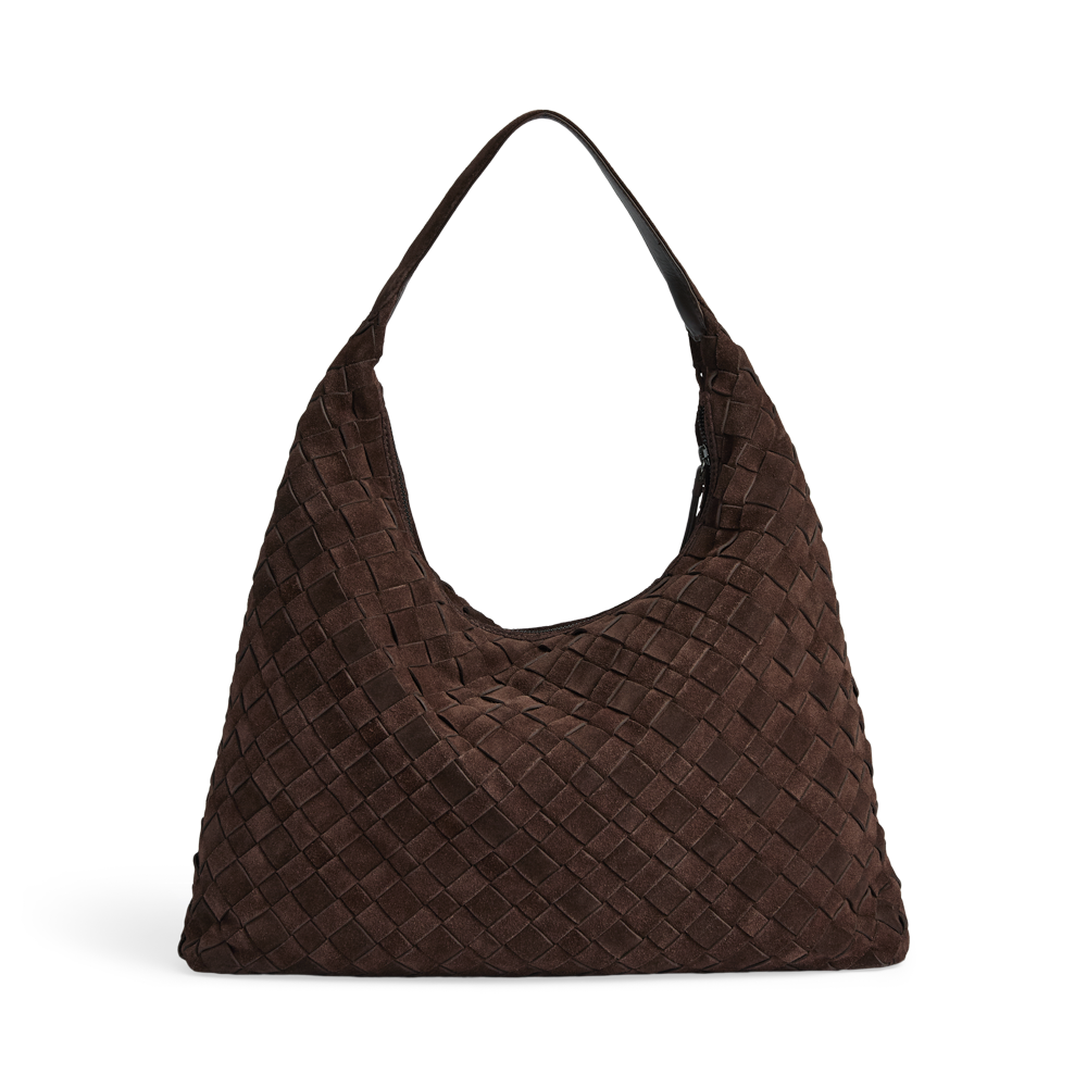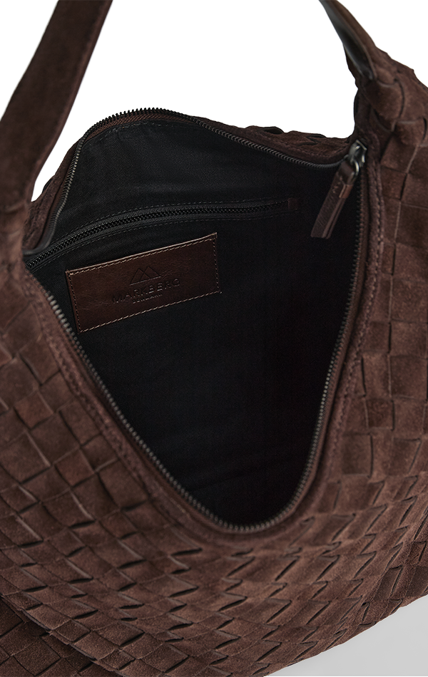 A spacious bag with a handwoven suede surface and a soft, relaxed look. The large main compartment closes with a zip and offers plenty of room for everyday essentials. The bag is comfortably worn over the shoulder and is a stylish choice for both everyday use and work.