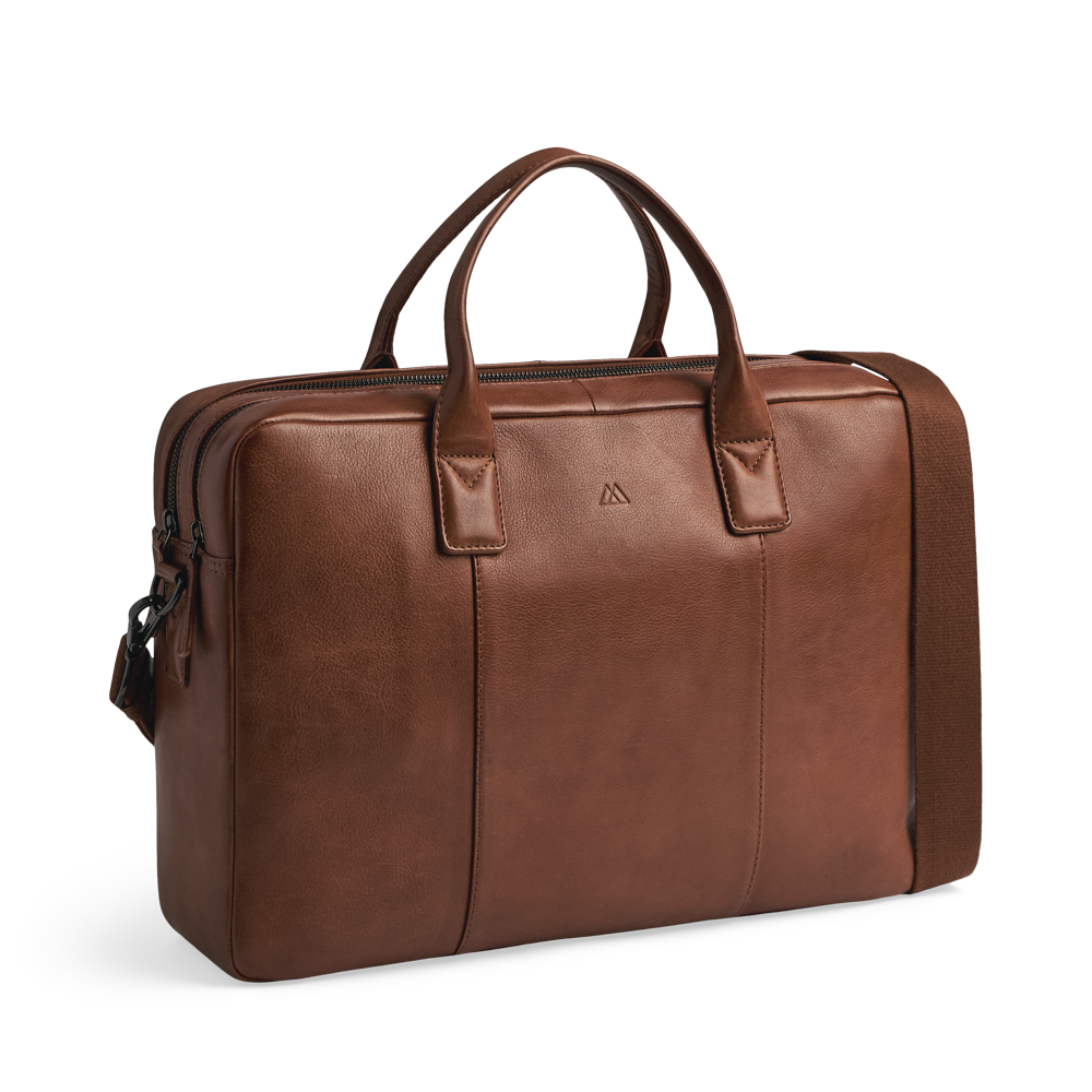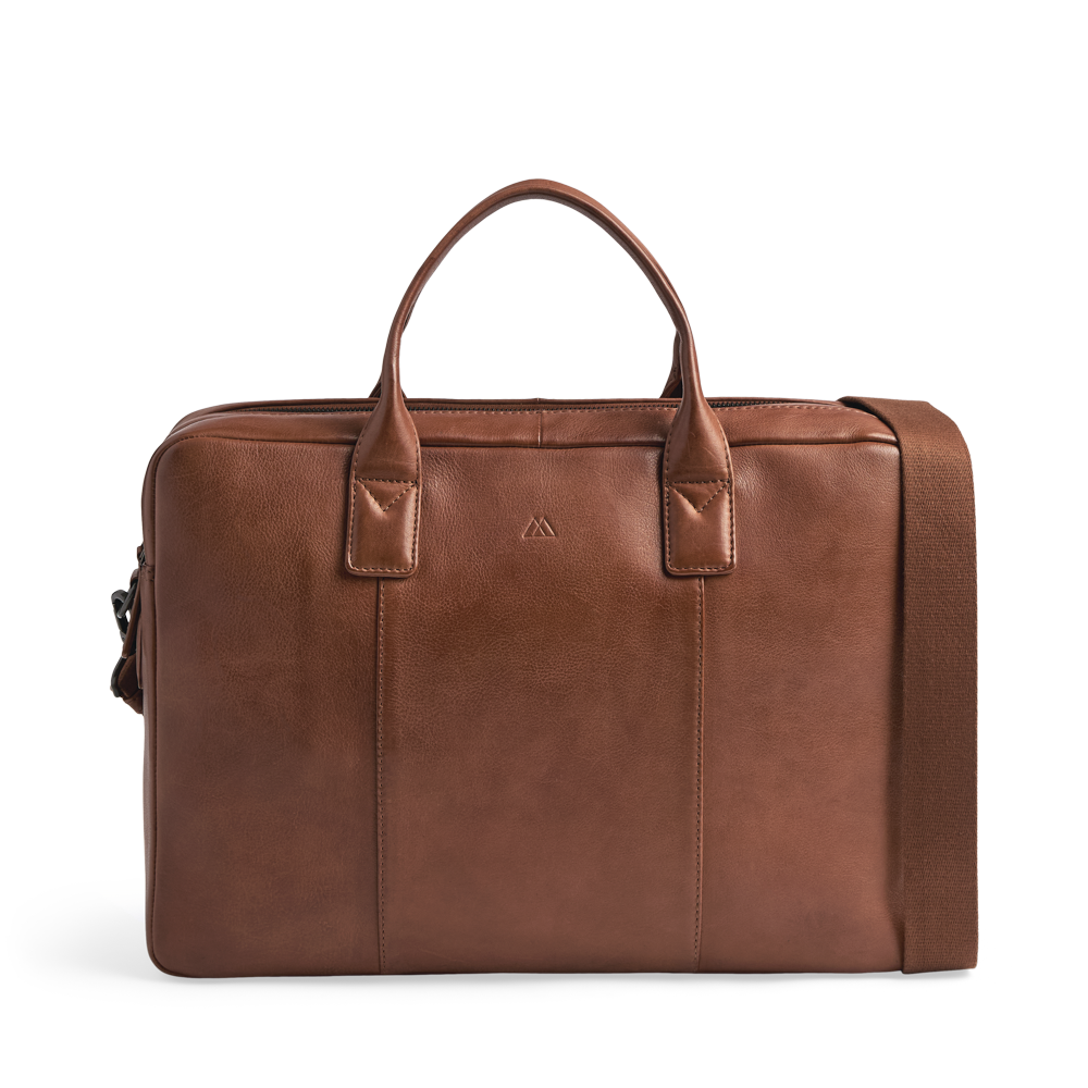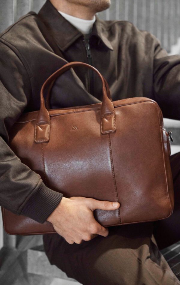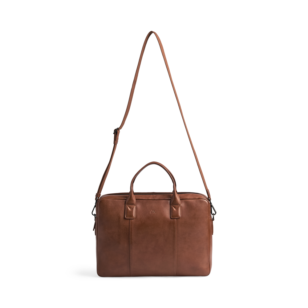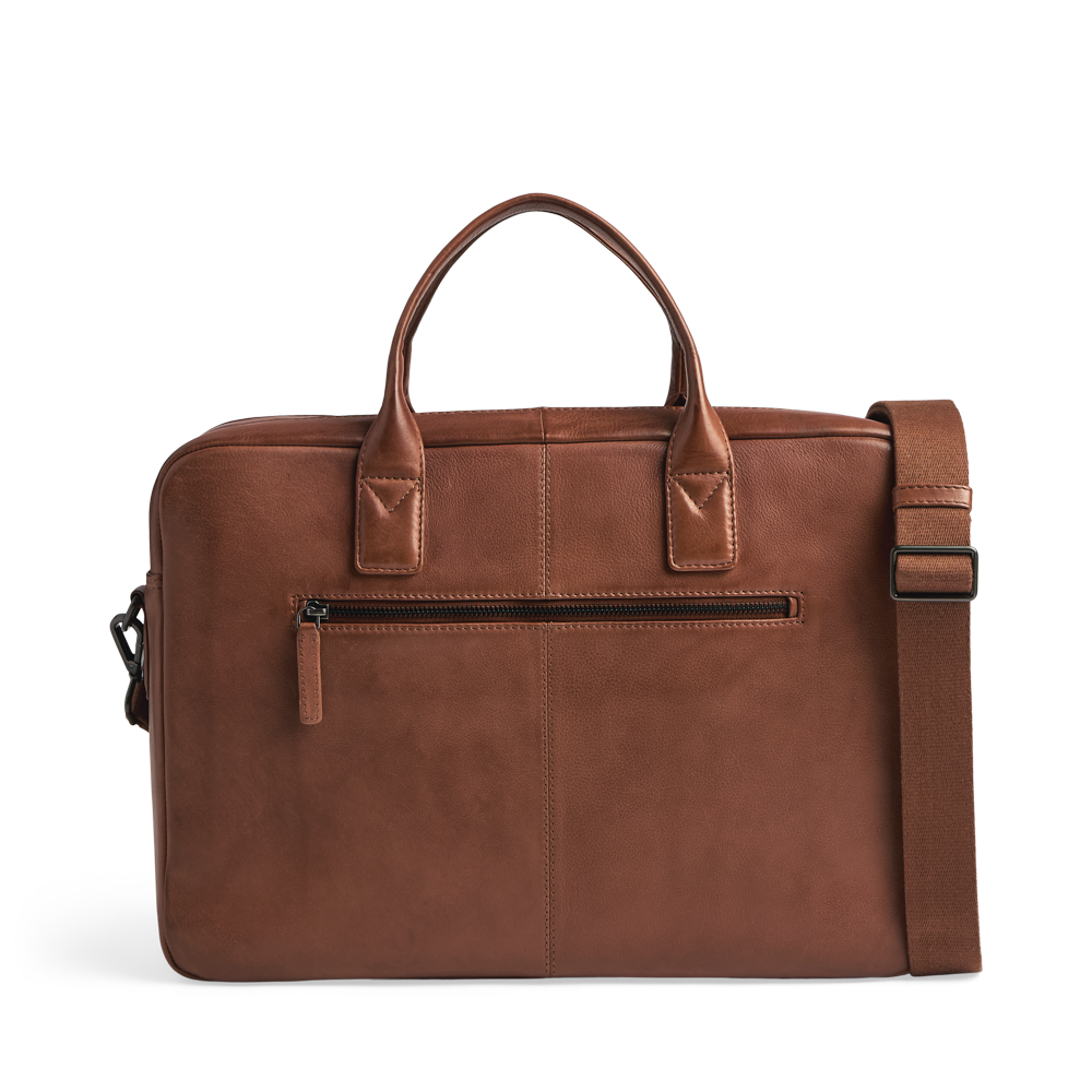 • Made from genuine calf leather • Two separate main compartments with zip closures • Padded compartment for a laptop • Extra compartment for documents or an iPad • Multiple interior pockets for small items and pens • Front zip pocket • Back zip pocket • Back strap for attaching to a suitcase • Detachable and adjustable shoulder strap • Two carry handles • Durable inner lining • Zip closures • The leather’s texture and tone may vary naturally, giving the bag a unique character