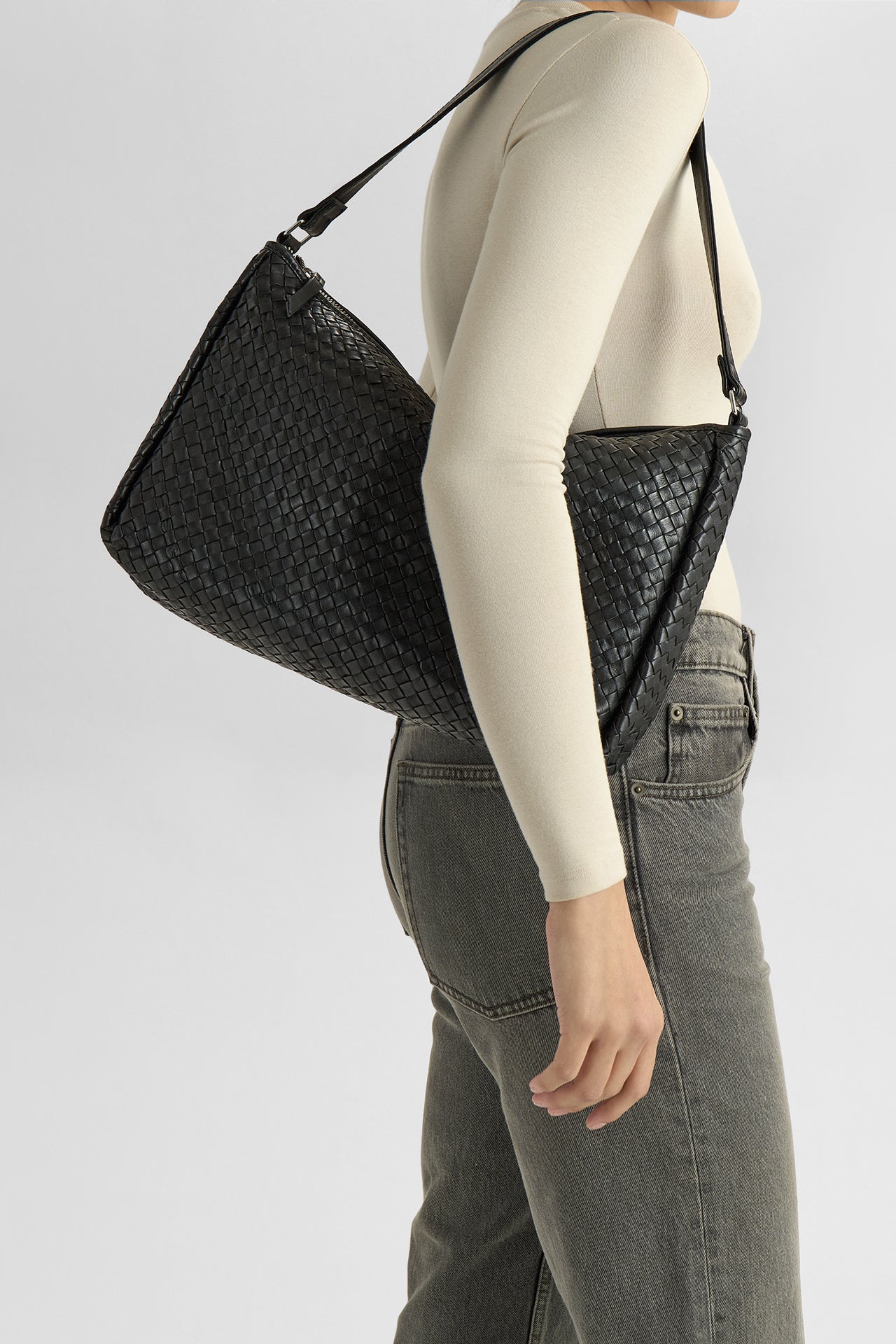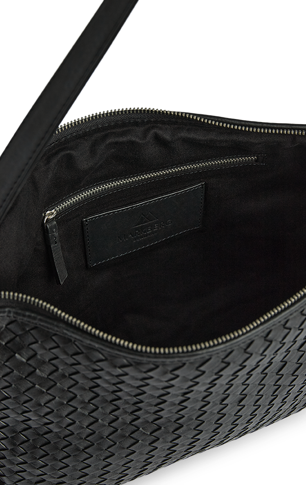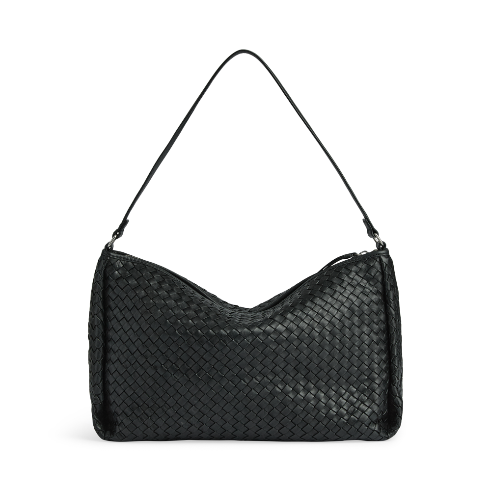 A spacious bag with a woven surface and a soft, elegant look. The large main compartment closes with a zip and offers room for everyday essentials.