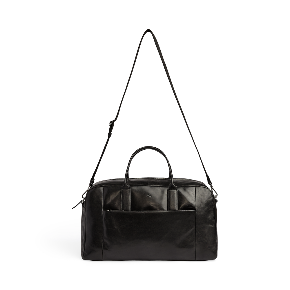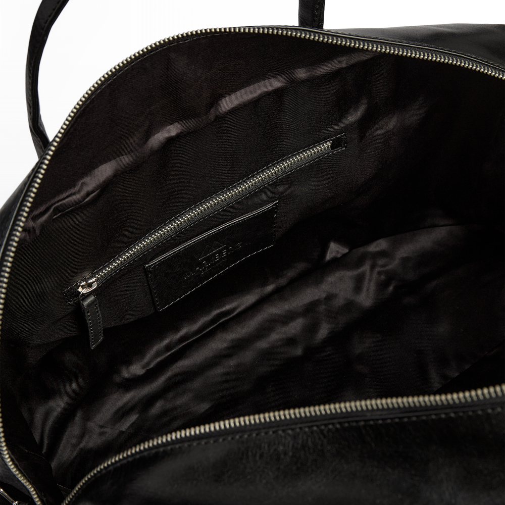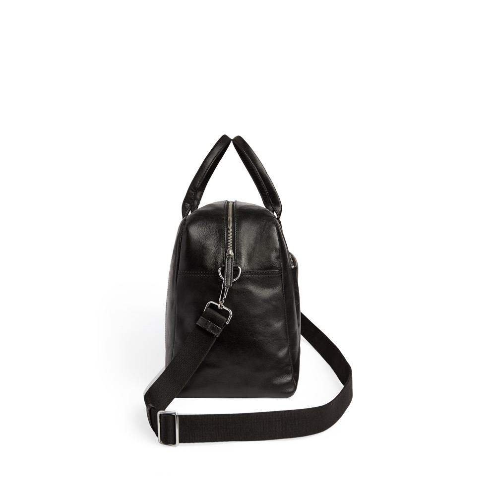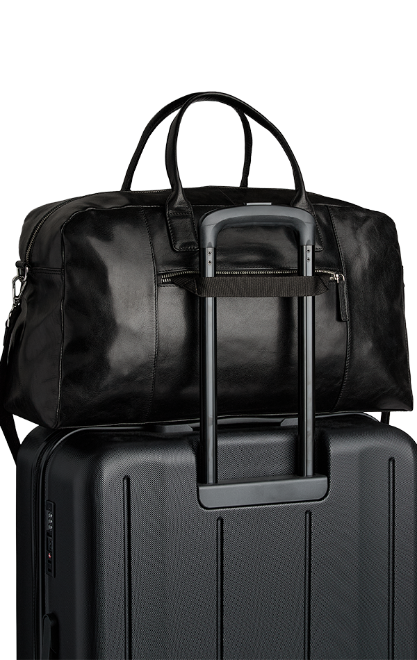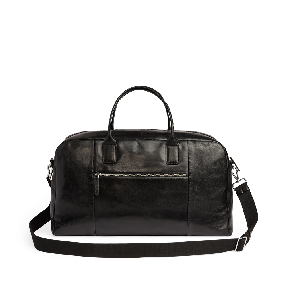 • Made from genuine calf leather • Spacious main compartment with room for clothes and shoes • Interior zip pocket • Interior open pocket • Back zip pocket • Large open front pocket • Back strap for attaching to a suitcase • Detachable and adjustable shoulder strap • Two carry handles • Zip closure • Durable inner lining • The leather’s texture and tone may vary naturally, giving the bag a unique character