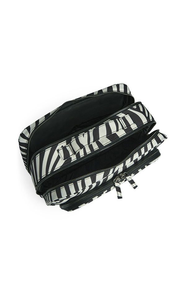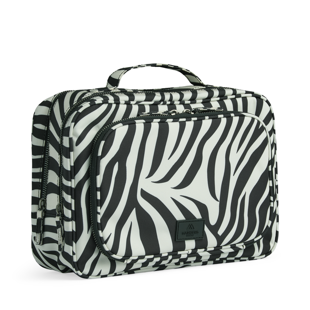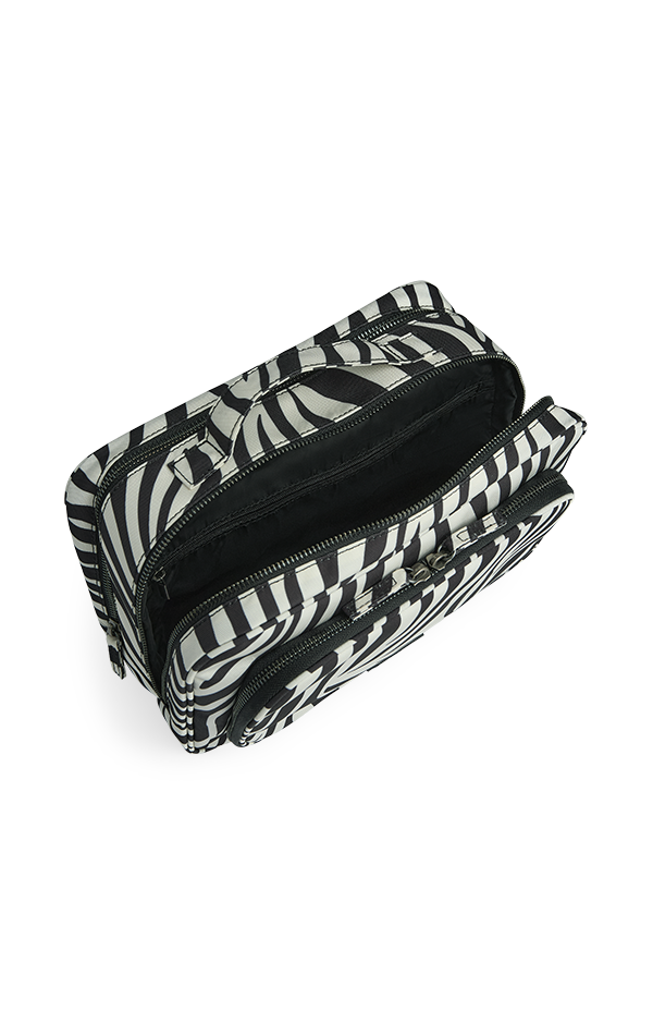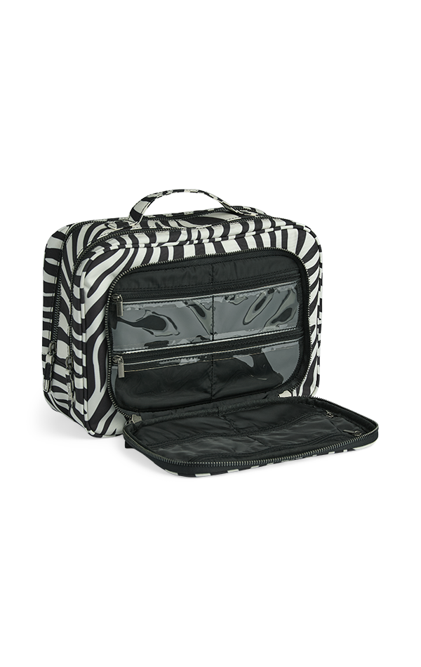Zip compartment with two pockets and elastic dividers to keep your items in place