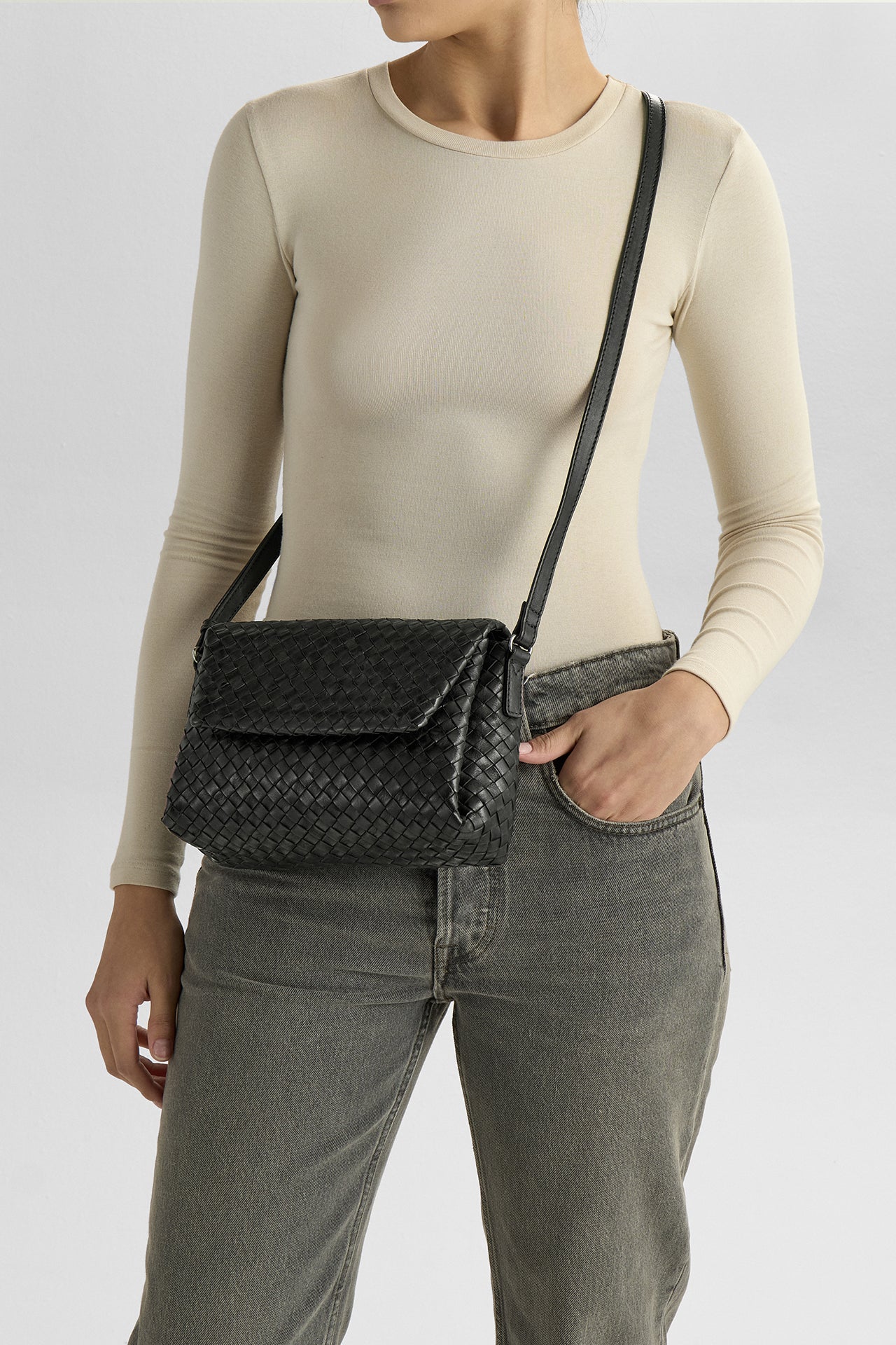 An elegant and timeless crossbody bag with an exclusive handwoven look, making it easy to style for both everyday wear and evenings out.