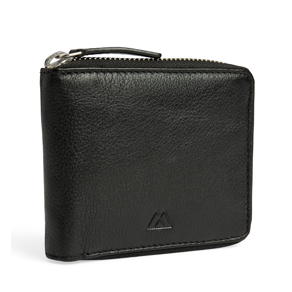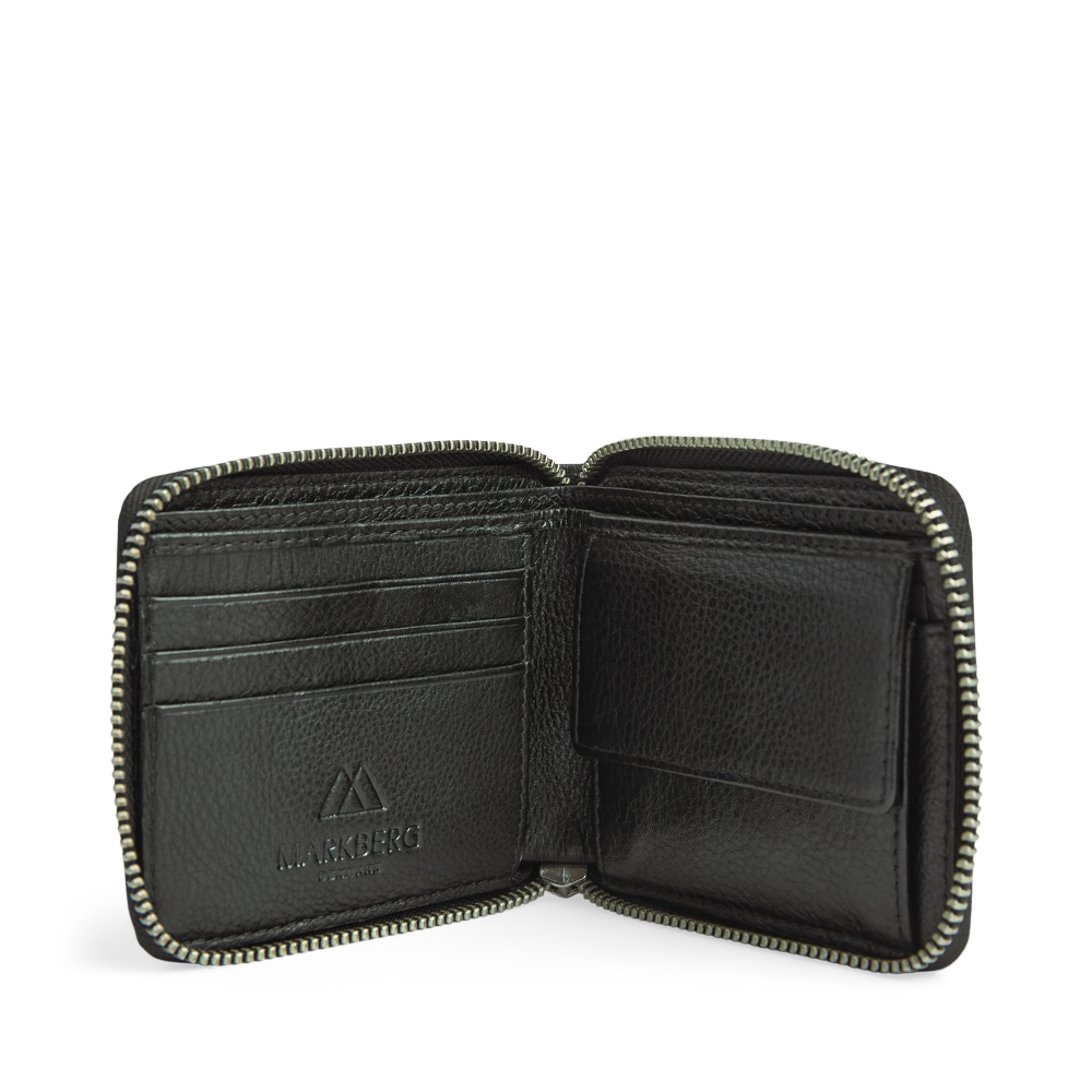• Made from genuine cow leather • Zip-around closure • 3 interior card slots • Coin pocket with flap and snap button • 2 bill compartments behind the card slots • Discreet embossed Markberg logo inside • The leather’s texture and shade may vary naturally, making each wallet unique