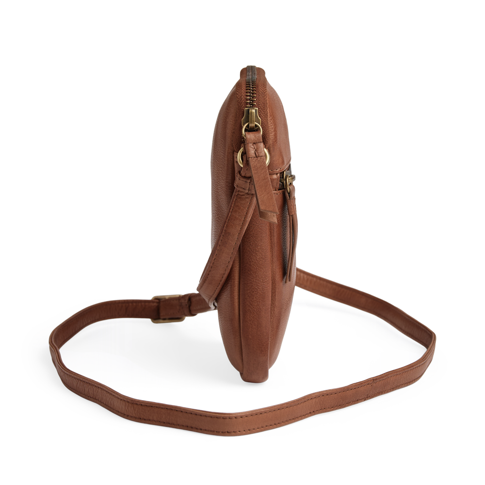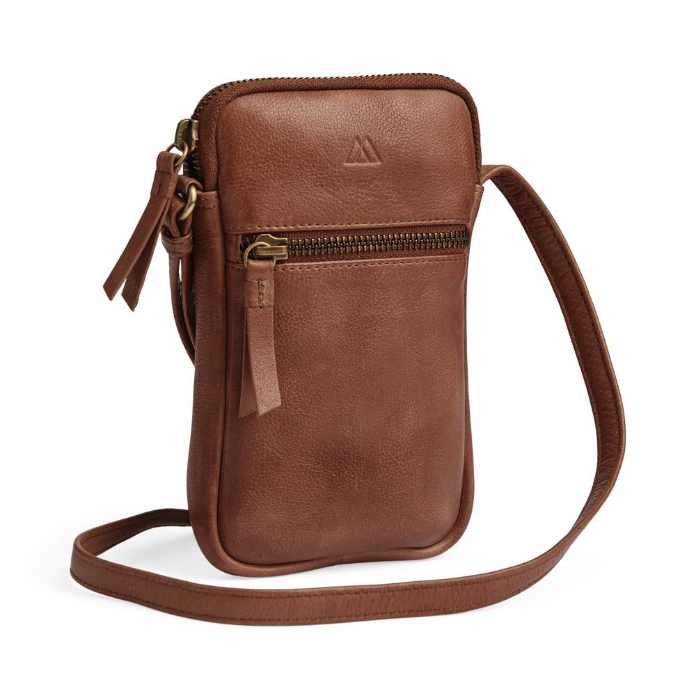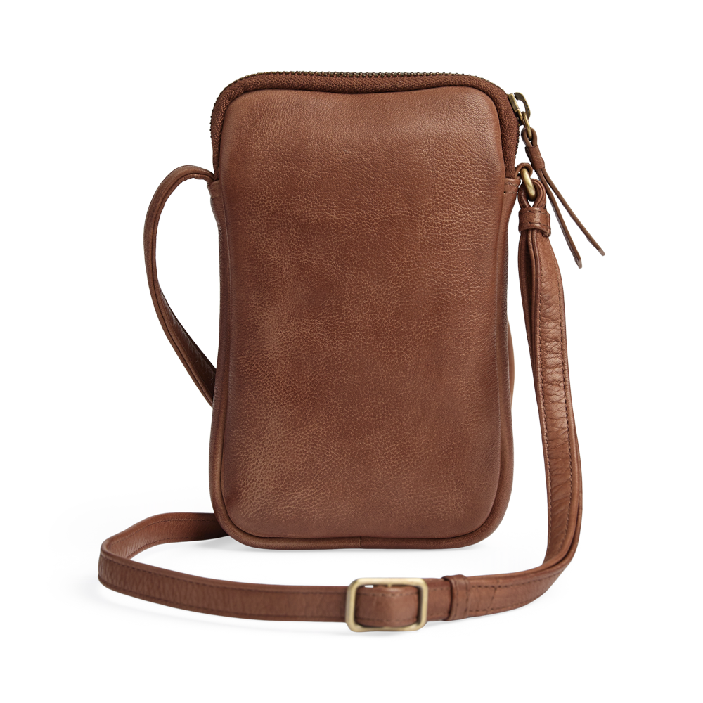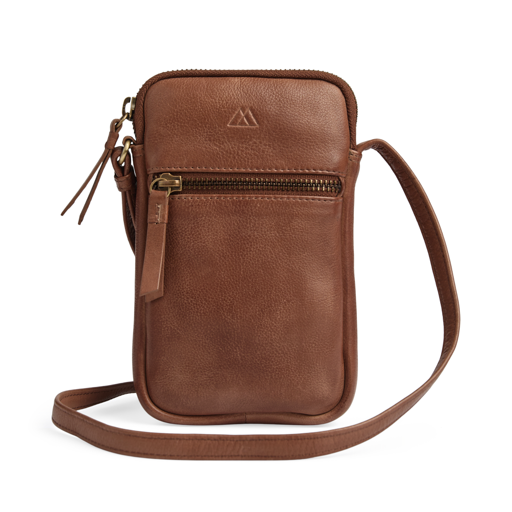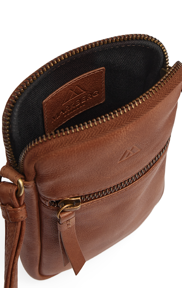 An elegant and compact phone bag with a clean look and refined gold details. The design is perfect for keeping your smartphone close at hand in everyday life.