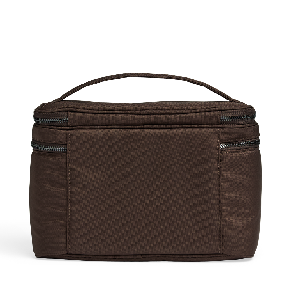 The top zip compartment features sections for makeup brushes as well as a zip pocket