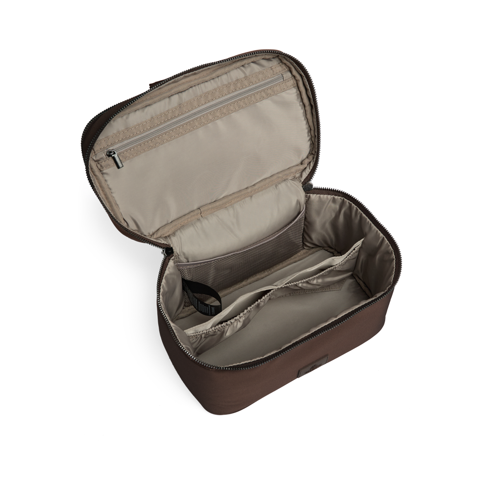 A functional toiletry bag made from water-repellent, vegan materials with practical compartments and plenty of space. The separate sections provide easy organization, making it ideal for storing makeup and toiletries - both at home and on the go.